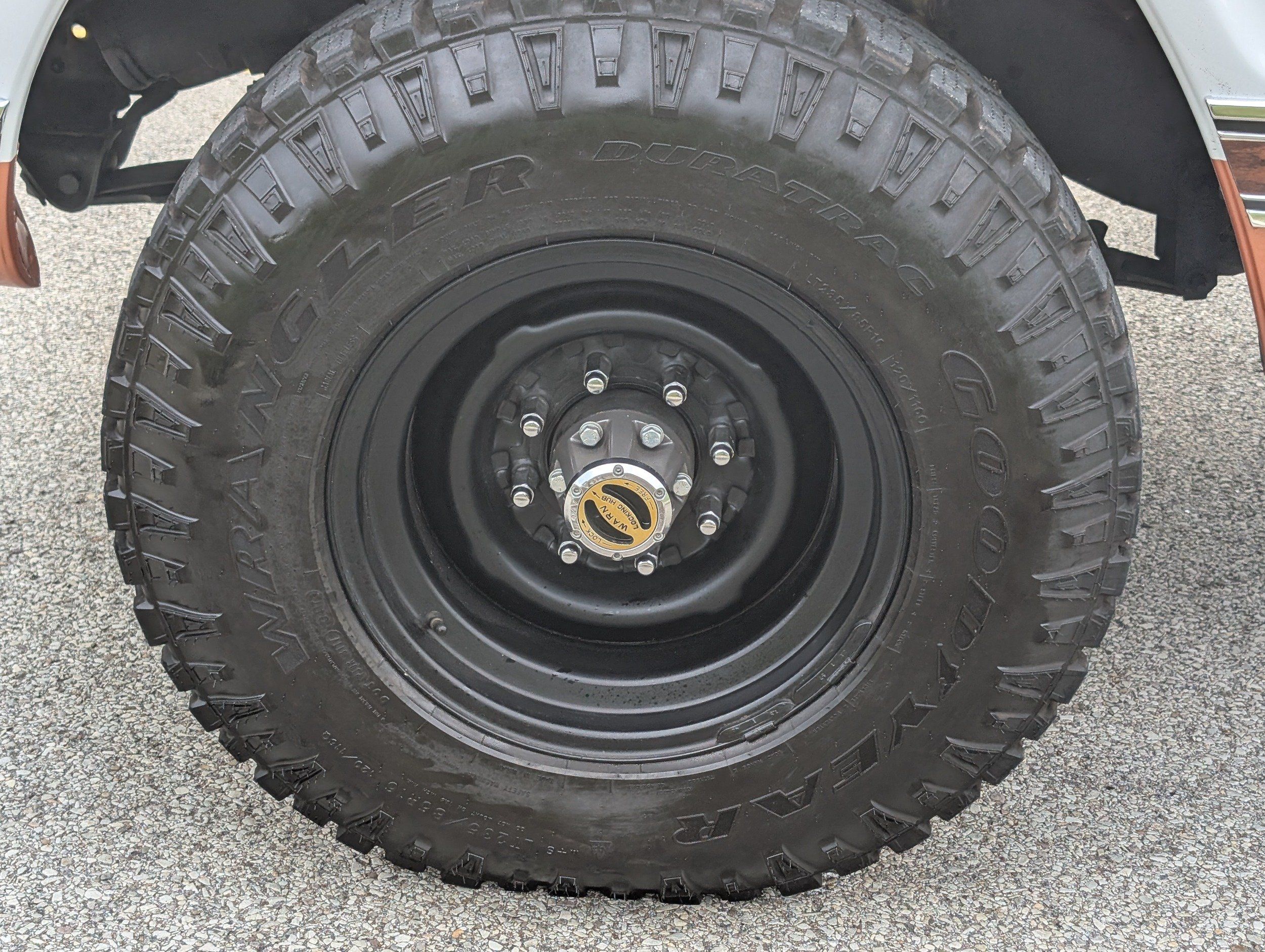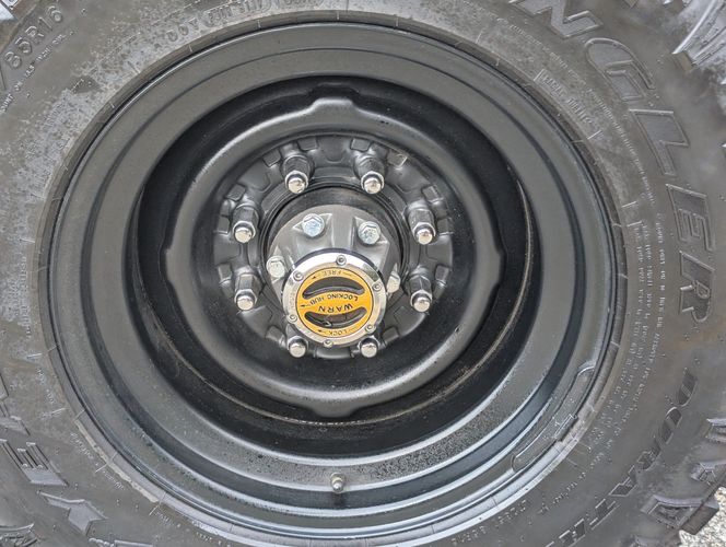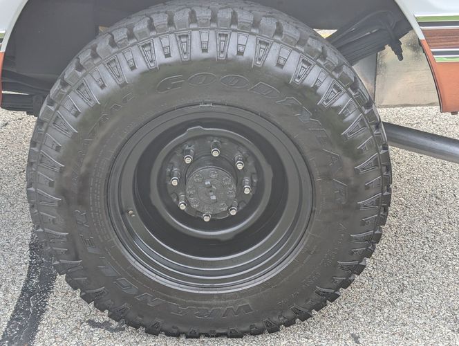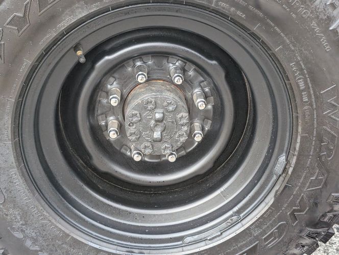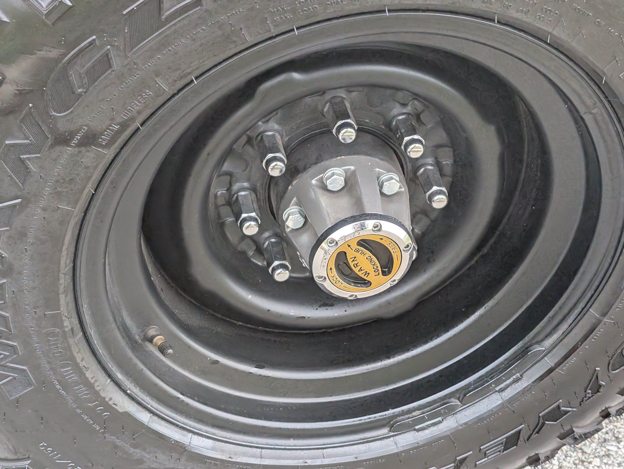 Black steel wheels with aggressive tires