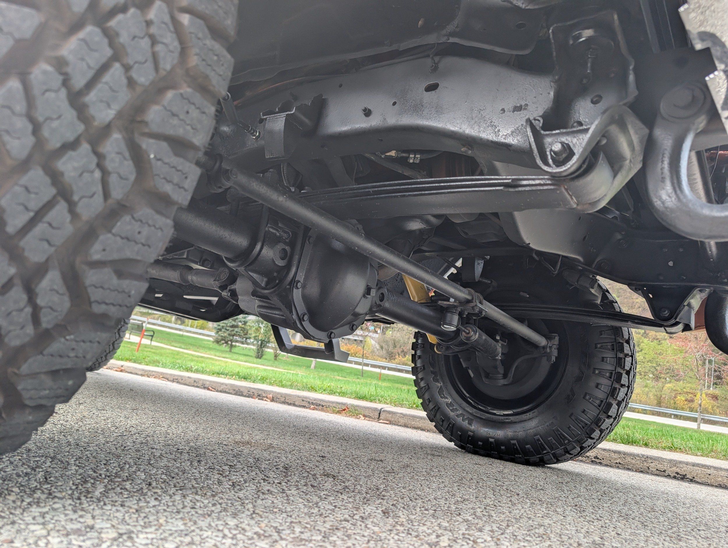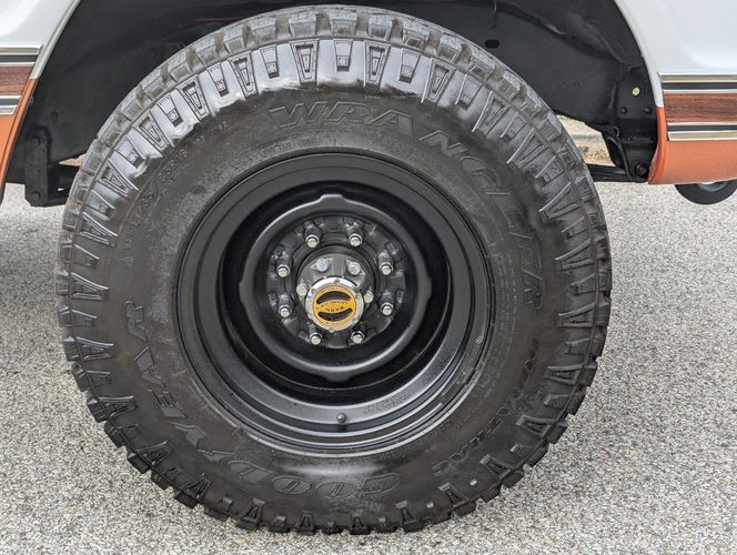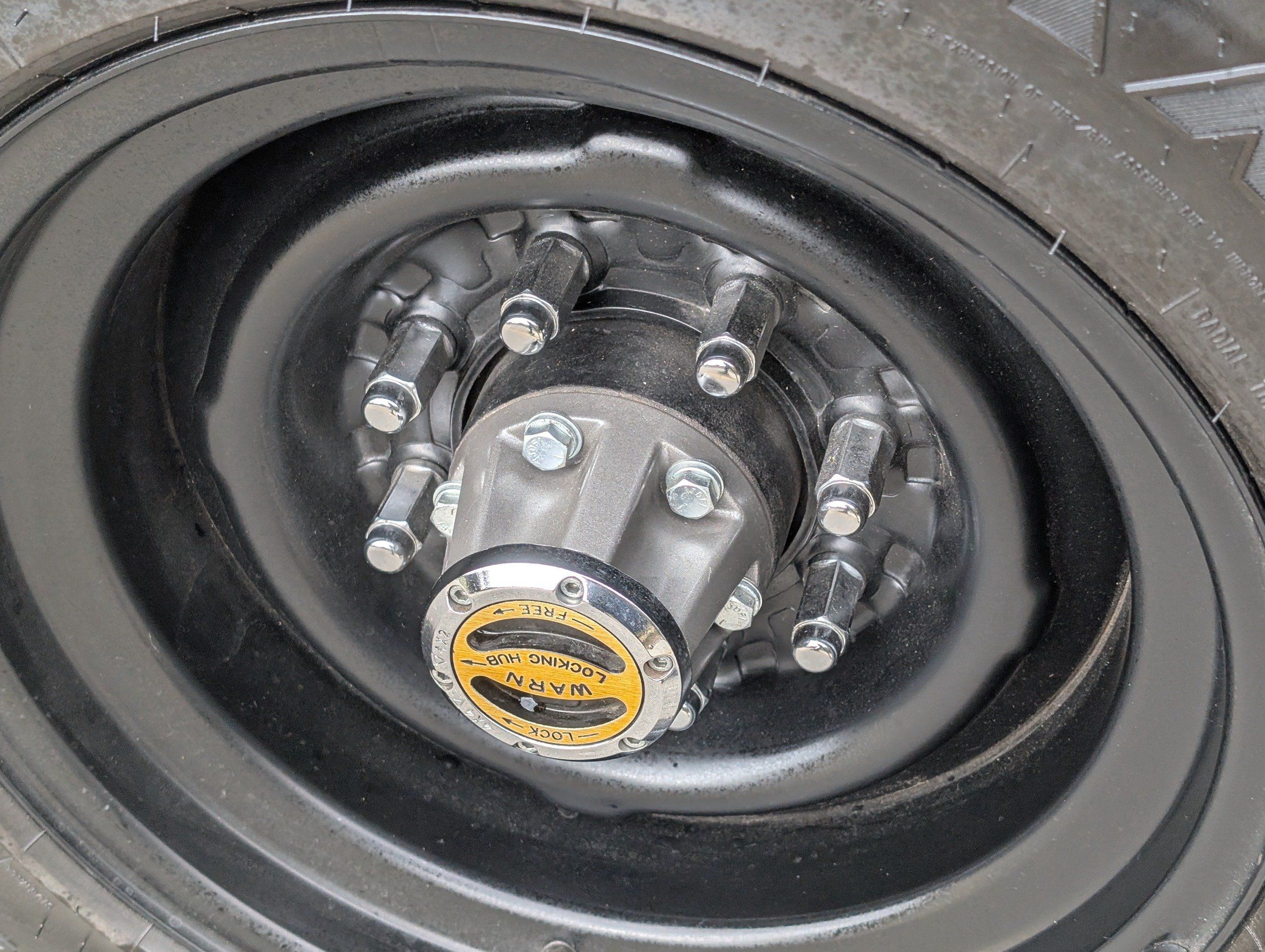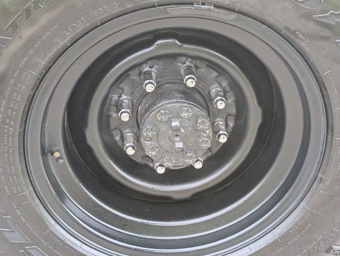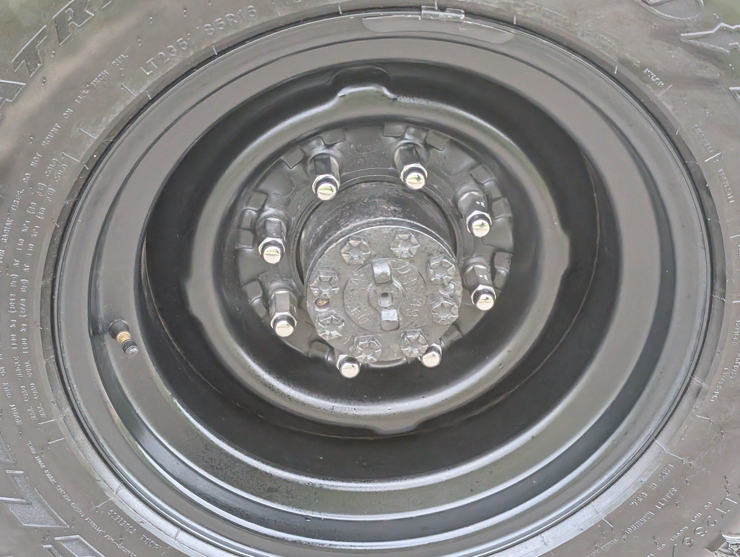 Black steel wheels with aggressive tires
