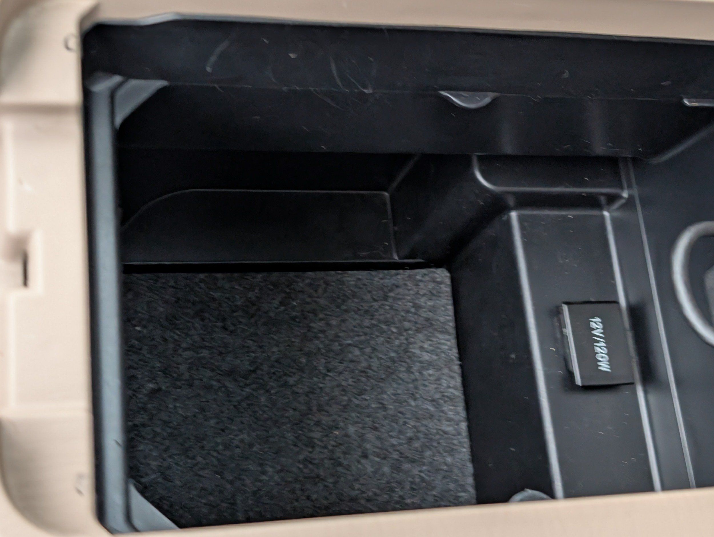 Floor console storage: Covered floor console storage