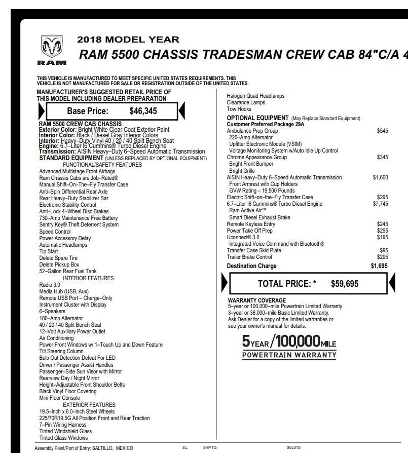 2018 Ram 5500 Tradesman Crew Cab 4x4