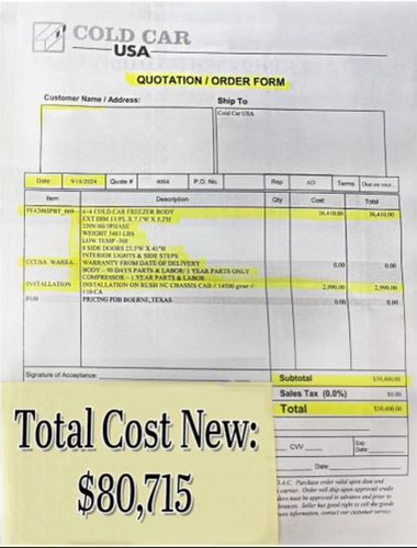 You are looking at a fleet of Cold Chain Command Units — 2018 through 2022 Ford E-450 Super Duty chassis, purpose-built with Cold Car USA freezer bodies and Roush CleanTech propane systems. These are not backyard builds or homebrew retrofits. Each truck cost $80,715 to build new, and weve got the factory invoices to prove it. Commercial freezer body. Eight locking side-access doors. Fully insulated. Interior lighting. -20°F capability. Built for food service, pharma logistics, or any mission-critical cold cargo work. Most units feature the black grille package, while the chrome-front model in the photos served as our media truck — all are identically specd underneath. Sitting on clean, rust-free chassis, fully upfitted and ready to deploy. No lead times. No guessing. No six-month delays from the body builder. We have multiple available now, but when theyre gone, theyre gone. This is a one-time opportunity to acquire trucks like this for a fraction of their original build cost. First come, first cleared.