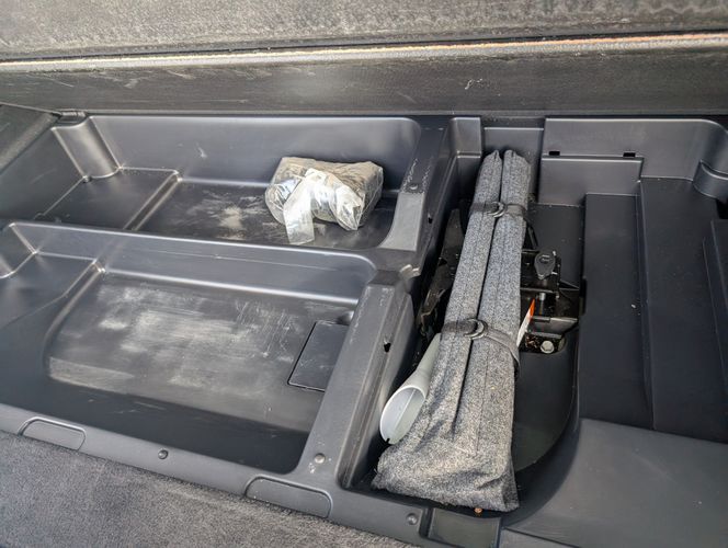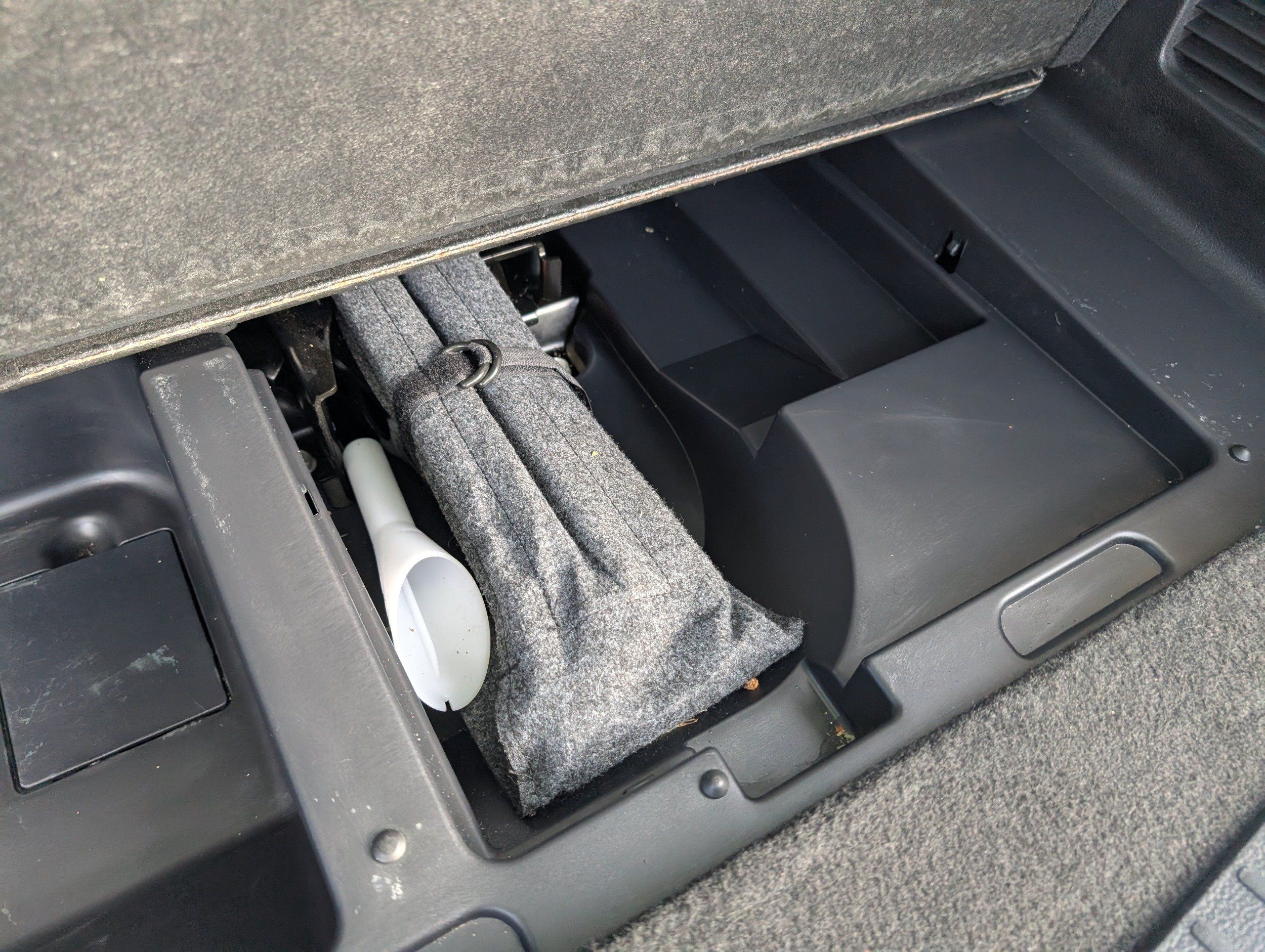 Floor console storage: Covered floor console storage