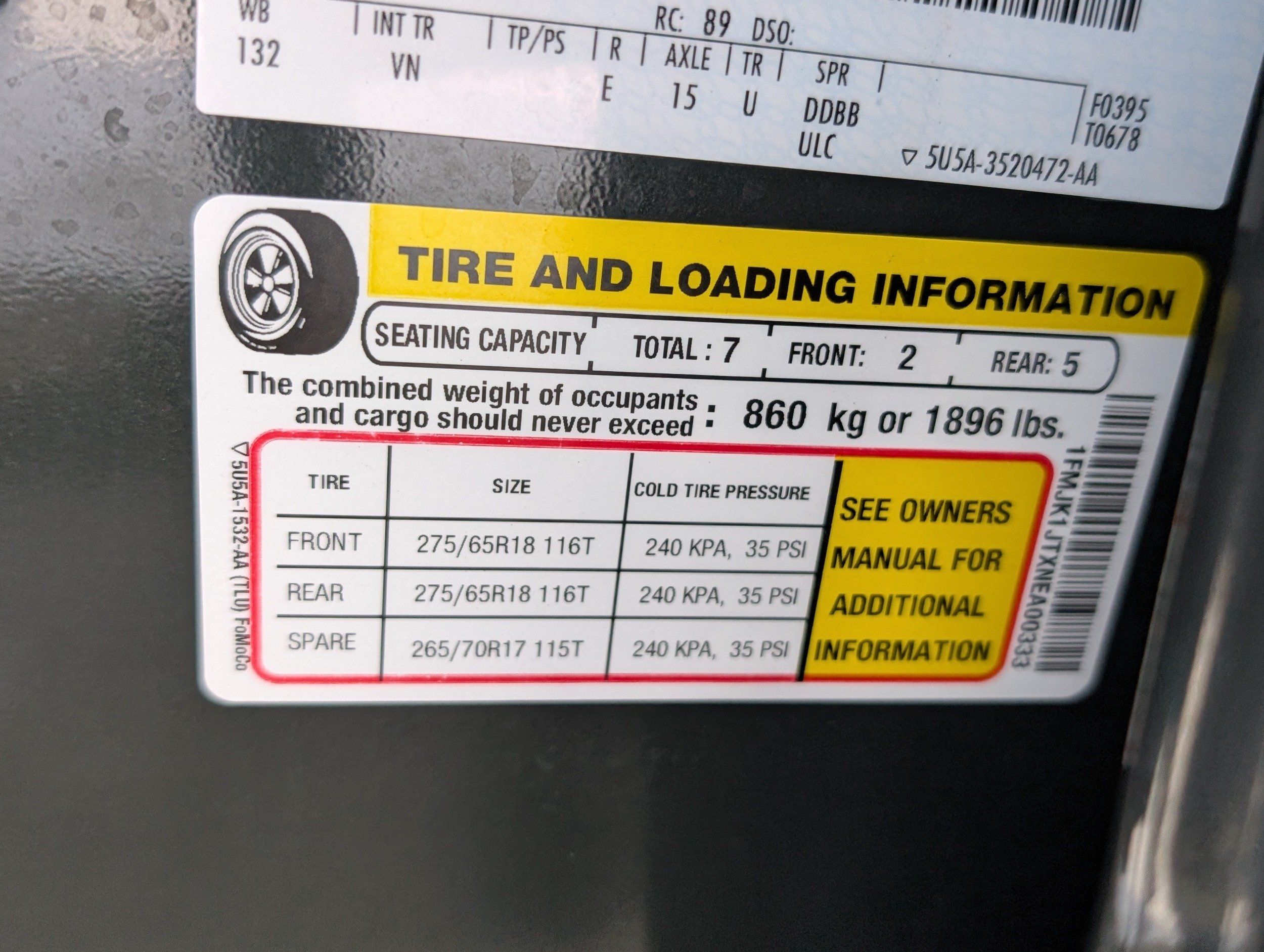 Rear seat upholstery: Cloth rear seat upholstery