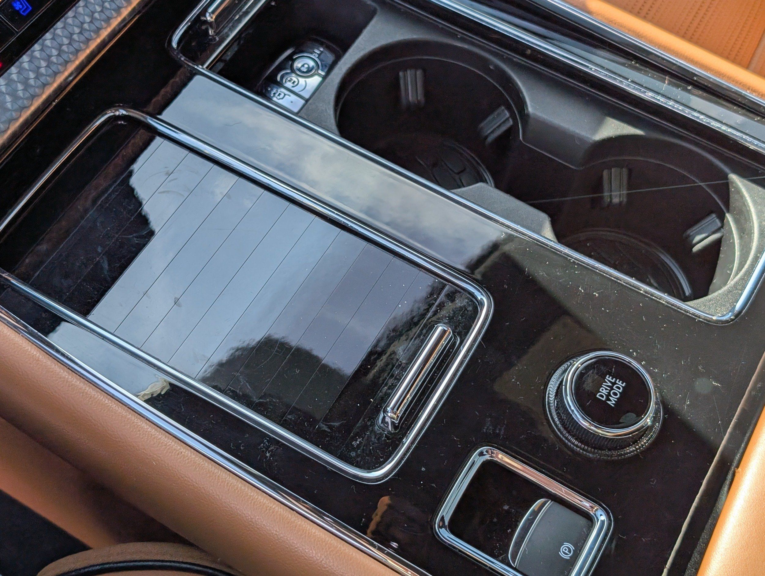 Floor console storage: Covered floor console storage