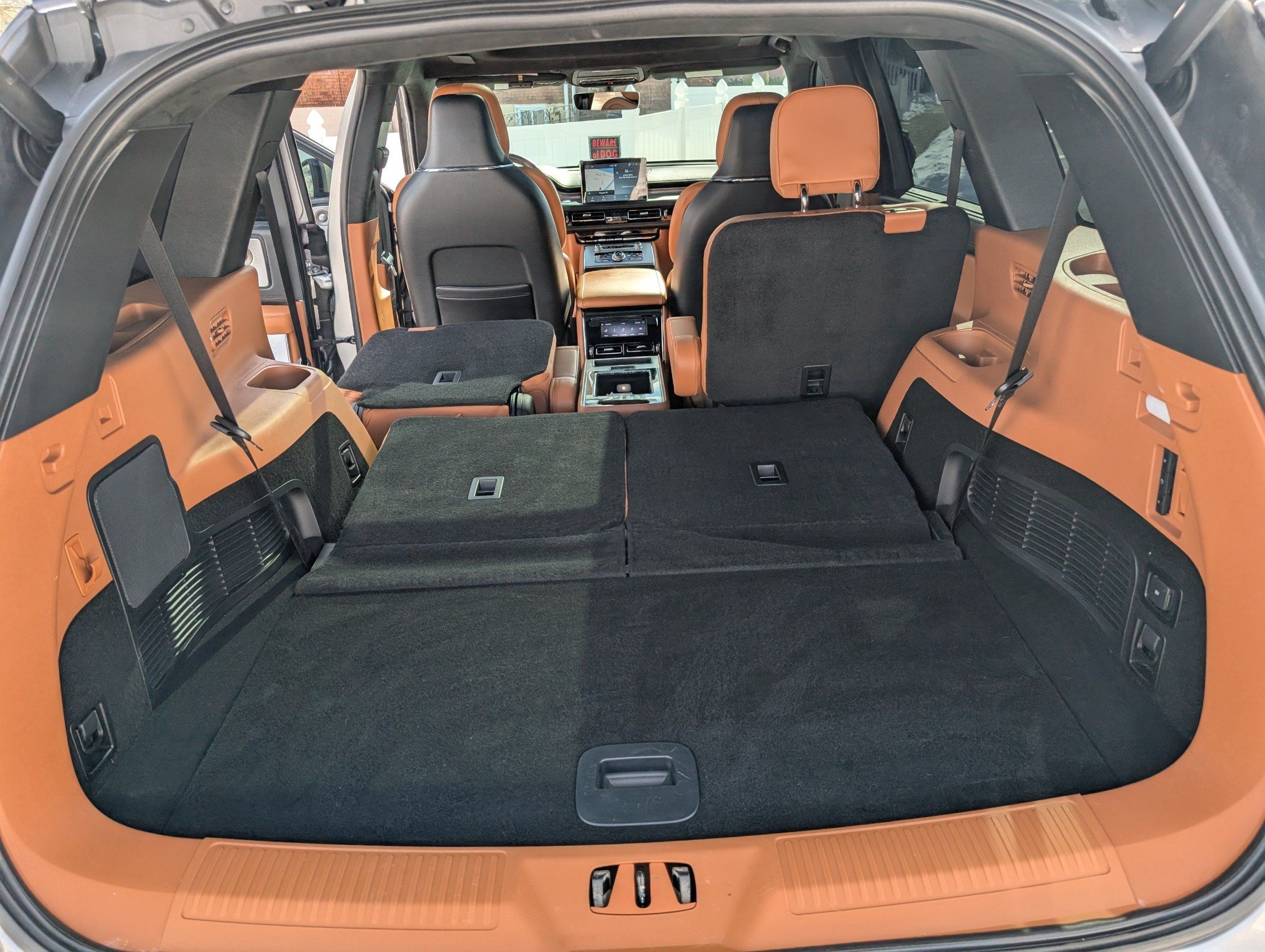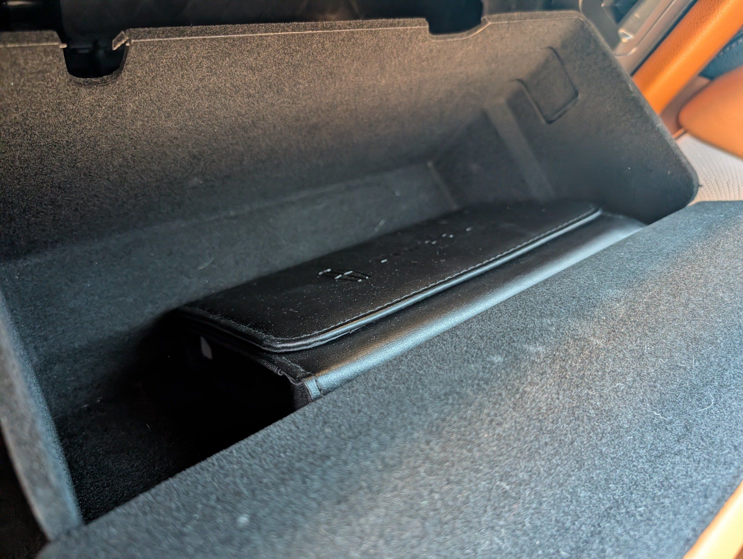 Third-row seatback upholstery: Carpet third-row seatback upholstery